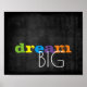 This inspirational typography quote colourful text poster has dream big on distressed charcoal grey background for wall art decor in home or office. Original art copyright Ann Powell all rights reserved.