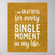 Faux glitter background is motivational. Bold inspirational quote states "I am grateful for every single moment in my life." I am statements are powerful tools to manifest abundance. Available in several sparkly colours. The law of attraction matches your vibration, so feel that your life is full of wealth and you will attract more money. Don't believe it? Try counting everything you are grateful for. Now can you see how many conveniences and luxuries exist in your daily life? Make a commitment of writing in your gratitude journal every day. List at least three things that you are grateful for each day. Work up to ten things a day, then get to a place where you can count one hundred wonderful things to be thankful for. Eventually, you will begin to mindfully meditate, noticing what is good and right in every single moment.