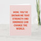 This heartfelt Mother's Day card features a bold and empowering message, celebrating the strength and kindness that moms bring into the world. Designed with a warm, modern aesthetic, the colours can be customised to suit any personal style—making it a perfect, meaningful gift for any mother figure.