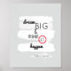 This inspirational quote poster dream big and make it happen has text on grey and white original paint stroke design wall art decor for home or office to buy online. Design copyright Ann Powell all rights reserved.