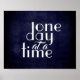This inspirational quote poster has a modern style typography white text with one day at a time on dark charcoal grey distressed background for wall art decor in home or office.