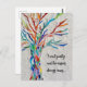 This decorative postcard features a mosaic tree in rainbow colours and an inspiring quote.