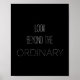 This inspirational quote typography poster is in a modern chic minimalist style with white text on bold black background and the words look beyond the ordinary.