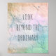 This inspirational quote typography poster is in a shabby chic style with text on peeling paint cracked stucco design with soft pastel colours and the words look beyond the ordinary. Original photography copyright Ann Powell all rights reserved.