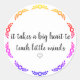 "It takes a big heart to teach little minds" circular stickers with rainbow flower border and mini heart for teachers.