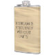 The flask itself is fine. It’s a cheap flask, obviously bought in bulk, however am prepared to overlook that. Given that it is a personalized item, I would have liked to have seen gift boxing instead of the generic packaging. Terrible printing, and/or quality. It’s a cheap, tacky vinyl. It is not cut straight and is also applied in a way that it is overhanging the bottom, causing the glue to catch on items and it will eventually roll and tear, damaging the wrap.