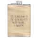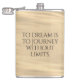 Add a touch of inspiration to your favourite drink with this hip flask, which features the uplifting words "To dream is to journey without limits" on golden waters!