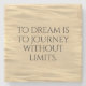 Add a touch of inspiration to the kitchen or dining experience with this trivet, which features the uplifting words "To dream is to journey without limits" on golden waters!