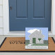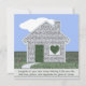 A personalised congratulations card for a new homeowner, featuring a charming design that celebrates the joy of a new home. The centerpiece is creative typography showcasing heartwarming phrases about home, beautifully overlaid on a picturesque photo of a house adorned with a heart, a cheerful bird in the front yard, and a vibrant blue sky. The design also includes a customisable typography field, allowing for personal messages or other unique customisations to make the card even more special.