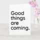 Good things are coming. Inspirational uplifting positivity quote in minimalist black and white typography.
