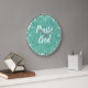 Here's a nice option... The inspirational, wall clock features, "Praise God" surrounded by a contemporary blue-gray (with hints of green) backdrop.