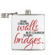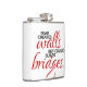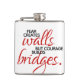 Add a touch of inspiration and motivation to your favourite drink with this flask, which features the words "fear creates walls but courage builds bridges" in elegant flowing script and sans serif lettering.