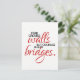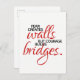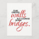 Add a bit of inspiration and motivation to your correspondence and campaigns with this postcard, which features the words "fear creates walls but courage builds bridges" in elegant flowing script and sans serif lettering.