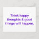 Recipients can perch this postcard anywhere around their home or office as a reminder of the power of thinking happy thoughts.