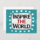 "Inspire The World" is a cute inspirational or motivational quote with a white accent shape surrounded by white textured whimsical dots.