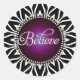 InspireMe! Believe Black White Mandala Plum Circle Classic Round Sticker