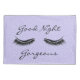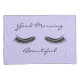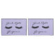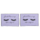 Black eyelashes with an uplifting quote on a pastel purple and white pin dot pattern.