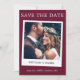 Instant Camera Style Couple Photo Burgundy Save The Date
