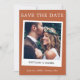 Modern Simple Retro Instant Camera Style Couple Photo Save The Date Photo Engagement Announcement Card - Terracotta