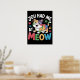 This delightful graphic features a cheerful, multi-coloured cartoon cat with patches of green, yellow, orange, blue, and purple fur, depicted with an ecstatic, open-mouthed expression. Surrounding the happy cat are scattered colourful paw prints and vibrant sparkle accents. The bold text, "YOU HAD ME AT MEOW," is rendered in lively, contrasting colours, humorously capturing the irresistible appeal of a cat's first vocalisation. The design is set against a solid black background. Digital download for personal use only.