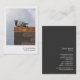 A business card template with an attractive modern vertical layout with a vertical rectangular image area. The style is perhaps reminiscent of Polaroid or instant photography photographs. The white border area is a frame mask which allows you to replace the main image with your own if required. Company details on the front with name and contact details on the back. Can be adapted to a variety of businesses and other uses. This design can also be adapted for use more as a profile card by removing or swapping the company and personal name details. Also great for promoting CDs, bands, gigs, or could be used to make event tickets, exhibition preview invitations etc.