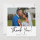 Thank people with these cute instant photos & handwritten typography thank you cards. Get creative and send multiple wedding pictures out. The details make your pictures look as though they were taken with an instant photo camera. Want to print out your personal photos yourself? Either delete all of the text and "thank you" graphic or check out our "home" or "all photo wedding" collections.
