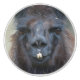 Very intense looking cute black llama face close up. Animal photography by Susan.