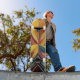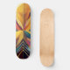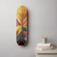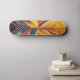 A vibrant array of bold, geometric shapes converges at the centre, forming a symmetrical and colourful composition. The piece uses a variety of hues, ranging from warm yellows and oranges to cool blues and purples.