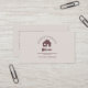 A simple business card with a house and a paintbrush icon in beige and brown tones. It could be used for an interior decorator (residential or commercial), but also for painter, construction, renovation, wallpaper and floor installation, etc.