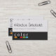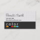 A colour box bar with the word colour over it is the base image for this design. The bottom half is a grey colour with a texture applied and the top is a white with a grey fabric looking texture applied. This is a very fun, modern and professional looking business card that can work for many professions but especially for interior designers.