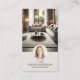Elevate your professional image with this customisable business card, perfect for interior designers, architects, and other creative professionals. Featuring two custom photos, your monogram, and name on the front, contact details, and a scannable QR code on the back, this modern card makes networking effortless. The replaceable icons allow you to highlight your key services or social media platforms. Ideal for showcasing your portfolio and making a lasting impression.