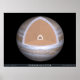 This picture illustrates the internal structure of Jupiter. The outer layer is primarily composed of molecular hydrogen. At greater depths the hydrogen starts resembling a liquid. At 10,000 kilometres below Jupiter's cloud top liquid hydrogen reaches a pressure of 1,000,000 bar with a temperature of 6,000° K. At this state hydrogen changes into a phase of liquid metallic hydrogen. In this state, the hydrogen atoms break down yeilding ionised protons and electrons similar to the Sun's interior. Below this is a layer dominated by ice where "ice" denotes a soupy liquid mixture of water, methane, and ammonia under high temperatures and pressures. Finally at the centre is a rocky or rocky-ice core of up to 10 Earth masses.