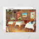 A fine art postcard with the post-impressionist painting by the Dutch artist Vincent van Gogh (1853-1890), Interior of a Restaurant (1887). A view inside an eating establishment in Arles, France with linen tablecloths and vases of flowers.