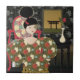 Stylish tile of a woman and a red chair. Add a frame or a box.