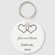 This black and white Interlocked Hearts keychain is customisable with the couple's names and wedding date.