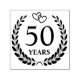 Elegant and romantic 50th wedding anniversary stamp with 50 inside a laurel wreath with interlocked hearts.