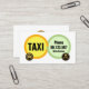 Cover features two interlocking circles (tires), that represent the taxi transport routes. The yellow taxi circle has the business name "TAXI" inside it with a gold taxi car icon orbiting it. The green taxi circle has the phone contact and your prestigious name inside. Circling the circle is a driver's orbit.