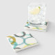 The coasters are gorgeous, a quality feel and heavy weight. They look like a precious archeological find. A rustic stone juxtaposed with a modern floral black and white print. I like the way the print goes slightly imperfect on the cut stone edges giving them a kind-of natural beauty.