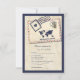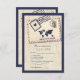 This design captures the spirit of wanderlust and love, blending vintage travel aesthetics with rustic charm. Featuring classic airmail stripes in red and blue, muted beige tones, and subtle map textures, it evokes the feeling of setting off on a grand romantic journey. Elements like postage stamps, world map details, and retro styling make it perfect for couples who dream of a global celebration filled with adventure, connection, and timeless elegance.