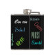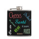 Fun flask done in black with colourful international text reading cheers. Learn how to say cheers in German, Polish, Japanese, Spanish, French, Finnish, Italian, and Czech. Personalise the name, on the front for yourself or as a fun gift idea.