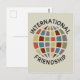 International Friendship with colourful globe icon Postcard