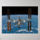 Backdropped by the blackness of space and Earth's horizon, the International Space Station moves away from the Space Shuttle Atlantis. Earlier the STS-117 and Expedition 15 crews concluded about eight days of cooperative work onboard the shuttle and station. Undocking of the two spacecraft occurred at 9:42 a.m. (CDT) on June 19, 2007. Astronaut Lee Archambault, STS-117 pilot, was at the controls for the departure and fly-around, which gave Atlantis' crew a look at the station's new expanded configuration.