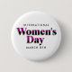 March 8th is International Women's Day button. Purple and black coloured vintage text button to celebrate women's equality.