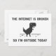 The internets is broke! Time to head outside. I guess. Perfect shirt for those days when you just can't connect and must brave reality. Much like the noble T-Rex.
