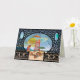 This fantasy science fiction greeting card shows people relaxing on the beach from within one of the bungalows at Utopia Cytheria, one of the moons of Risa. The beautiful ringed planet Magrathea is seen rising through the clouds framed by a beautiful screen and beaded curtain arch.
