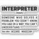 Funny Interpreter Sayings "Interpreter Someone Who Solves A Problem You Didn't Know You Had In A Way You Can't Understand". Grab this Funny Interpreter design as a funny gifts for an awesome mum, dad or friend.