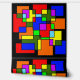 A mondrian style design, geometric and colorful, colored intersecting squares and rectangles