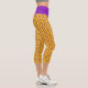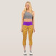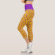 Leggings with a repeating pattern of the pride flag for intersex people. This is a purple ring on a yellow background. The waist is a matching purple.