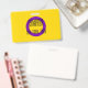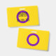 The background is the pride flag for intersex people. This is a purple ring on a yellow background. There is space for a custom name and pronouns.