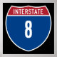A red, white and blue interstate road sign. This design is meant to be a birthday gift idea for truckers, drivers, and car enthusiasts from young to old. Show how many roads that you have been travelled. And also ... this design features a lucky number for a pre-trip souvenir for people getting ready for that vacation in Vegas!
